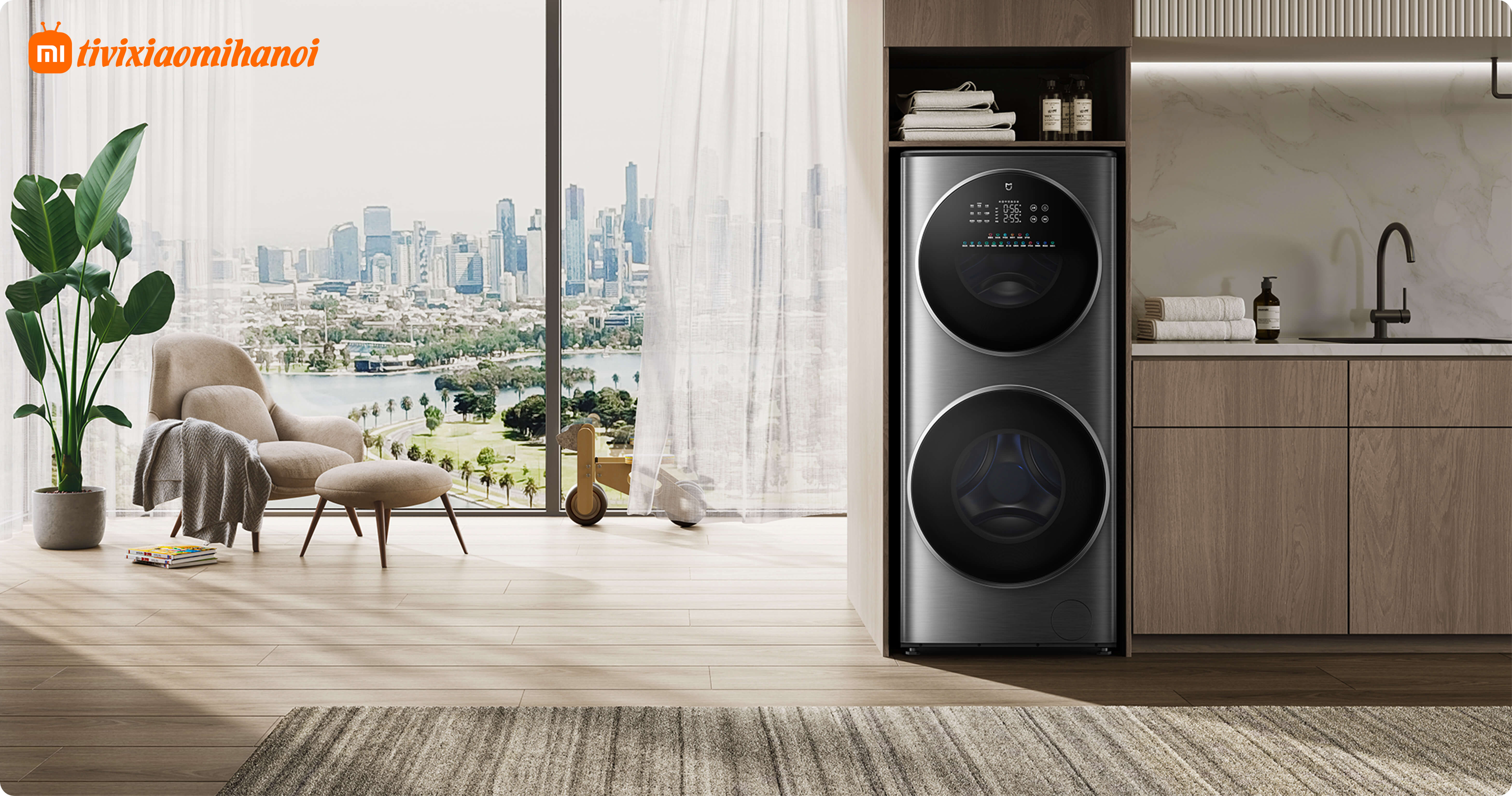 Thiết kế phân vùng trên và dưới , giặt một lần bằng máy, tiện lợi và nhanh chóng. Cấu trúc thẳng đứng được hình thành tích hợp để đem lại sự thoải mái khi giặt, có thể chia thành một lồng giặt và một lồng sấy, sử dụng cùng một lúc vẫn thoải mái.