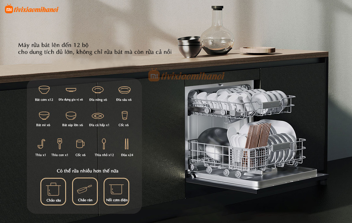 Máy rửa bát Xiaomi Mija 12 bộ thông minh , rửa sấy khô hiệu quả, sạch sẽ và nhanh chóng