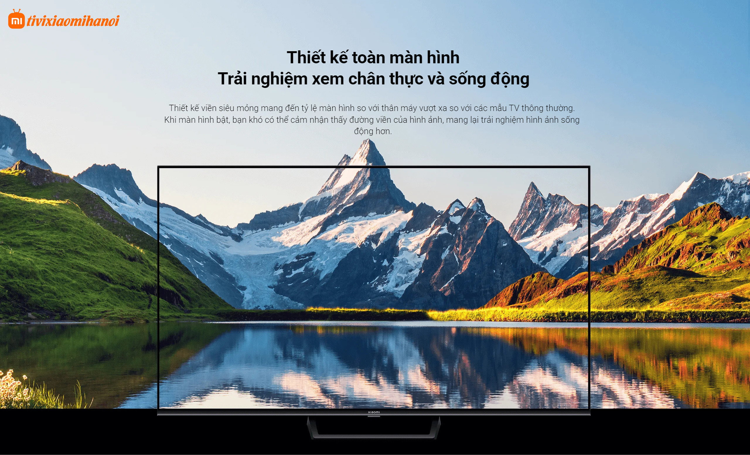 Tivi Xiaomi A Pro 65 được thiết kế toàn màn hình, trải nghiệm xem chân thực và sống động. Thiết kế viền siêu mỏng mang đến tỷ lệ màn hình so với thân máy vượt xa so với các mẫu TV thông thường. Khi màn hình bật, bạn khó có thể cảm nhận thấy đường viền của hình ảnh, mang lại trải nghiệm hình ảnh sống động hơn.