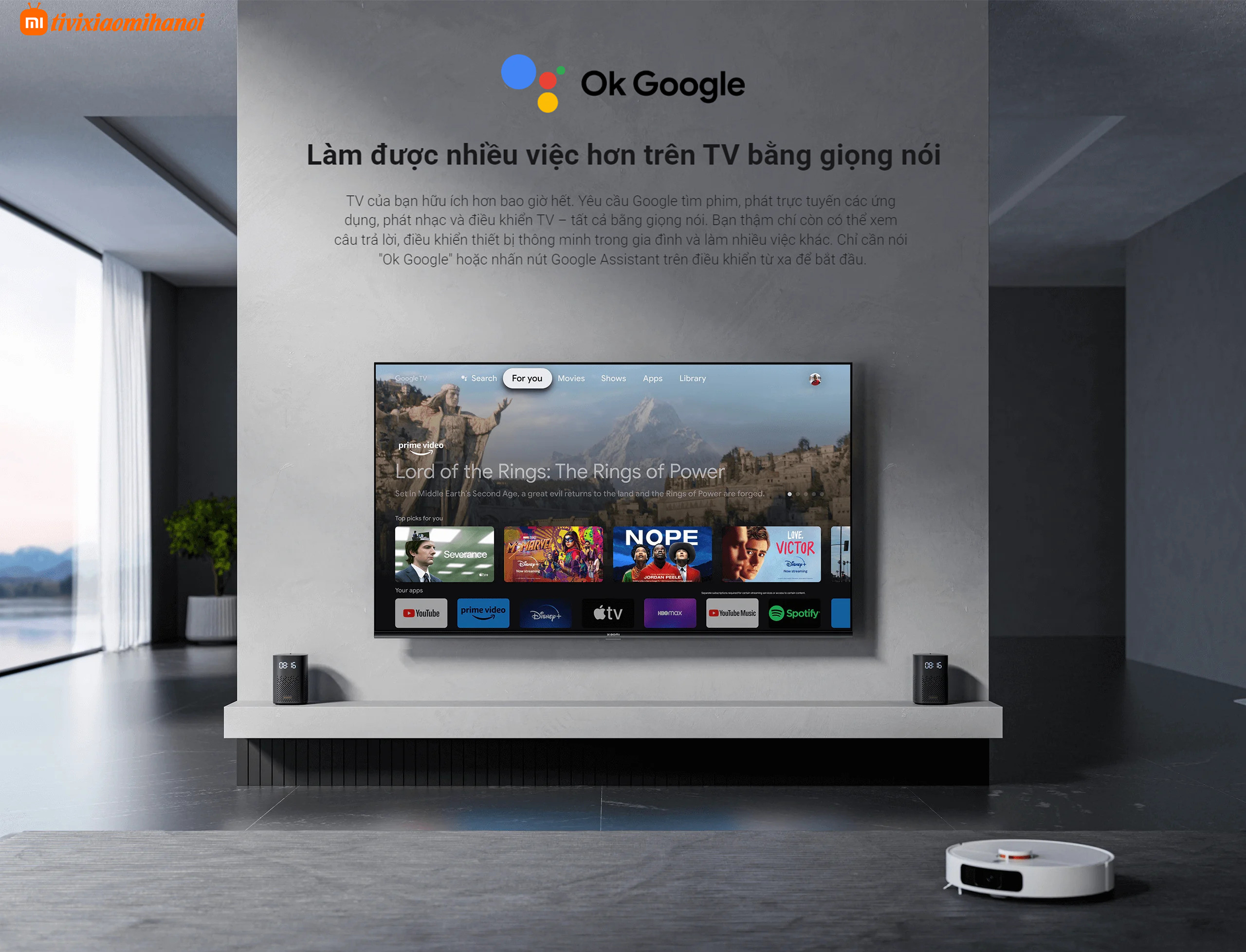 Tivi Xiaomi A Pro 65 làm được nhiều việc hơn trên TV bằng giọng nói. TV của bạn hữu ích hơn bao giờ hết. Yêu cầu Google tìm phim, phát trực tuyến các ứng dụng, phát nhạc và điều khiển TV – tất cả bằng giọng nói. Bạn thậm chí còn có thể xem câu trả lời, điều khiển thiết bị thông minh trong gia đình và làm nhiều việc khác. Chỉ cần nói "OK Google" hoặc nhấn nút Google Assistant trên điều khiển từ xa để bắt đầu.