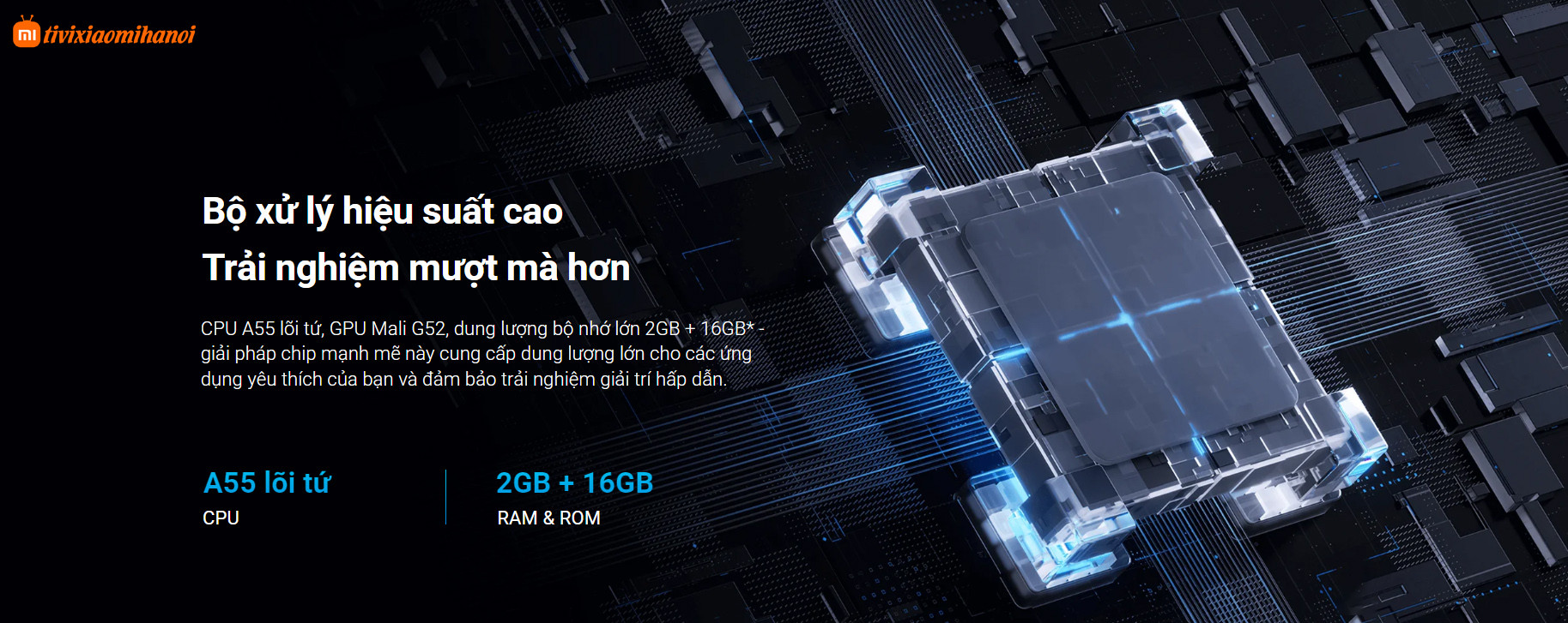 Tivi Xiaomi A Pro 65 có bộ xử lý hiệu suất cao, trải nghiệm mượt mà hơn. CPU A55 lõi tứ, GPU Mali G52, Ram 2G, dung lượng bộ nhớ 16G, giải pháp chip mạnh mẽ này cung cấp dung lượng lớn cho các ứng dụng yêu thích của bạn và đảm bảo trải nghiệm giải trí hấp dẫn.