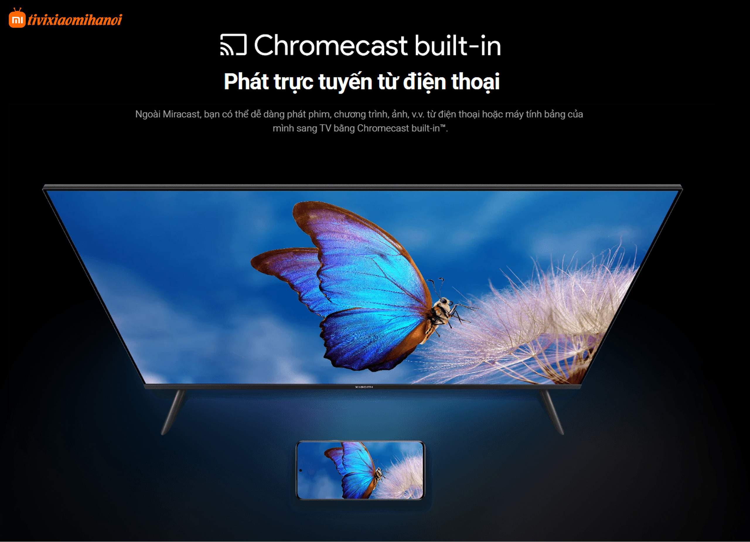 Hỗ trợ phản chiếu màn hình Chormecast. Ngoài Miracast, bạn có thể dễ dàng phát phim, chương trình, ảnh, v.v. từ điện thoại hoặc máy tính bảng của mình sang TV bằng Chromecast built-in™.