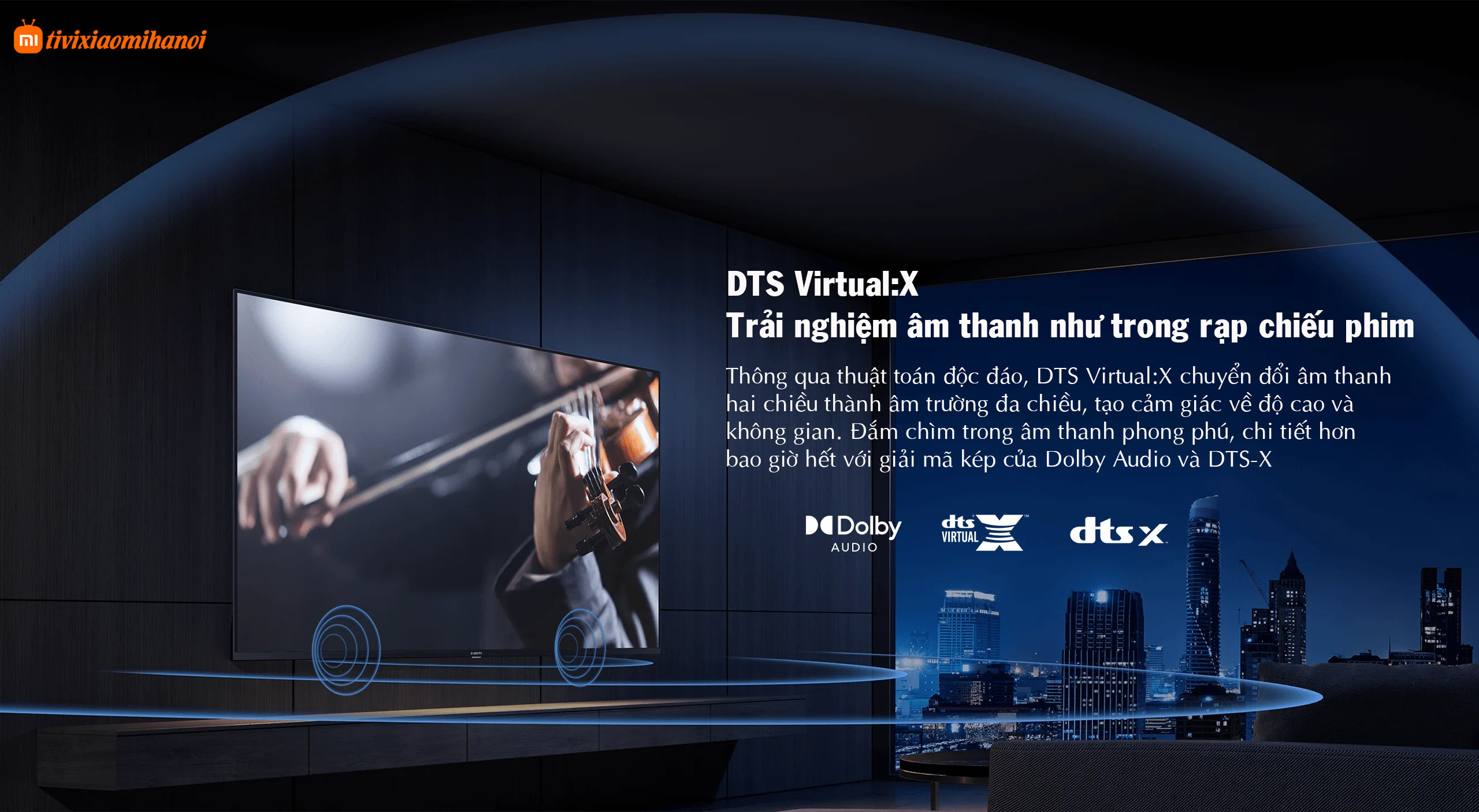 DTS Virtual:X- Trải nghiệm âm thanh như trong rạp chiếu phim. Thông qua thuật toán độc đáo, DTS Virtual:X chuyển đổi âm thanh hai chiều thành âm trường đa chiều, tạo cảm giác về độ cao và không gian. Đắm chìm trong âm thanh phong phú, chi tiết hơn bao giờ hết với giải mã kép của Dolby Audio và DTS-X.