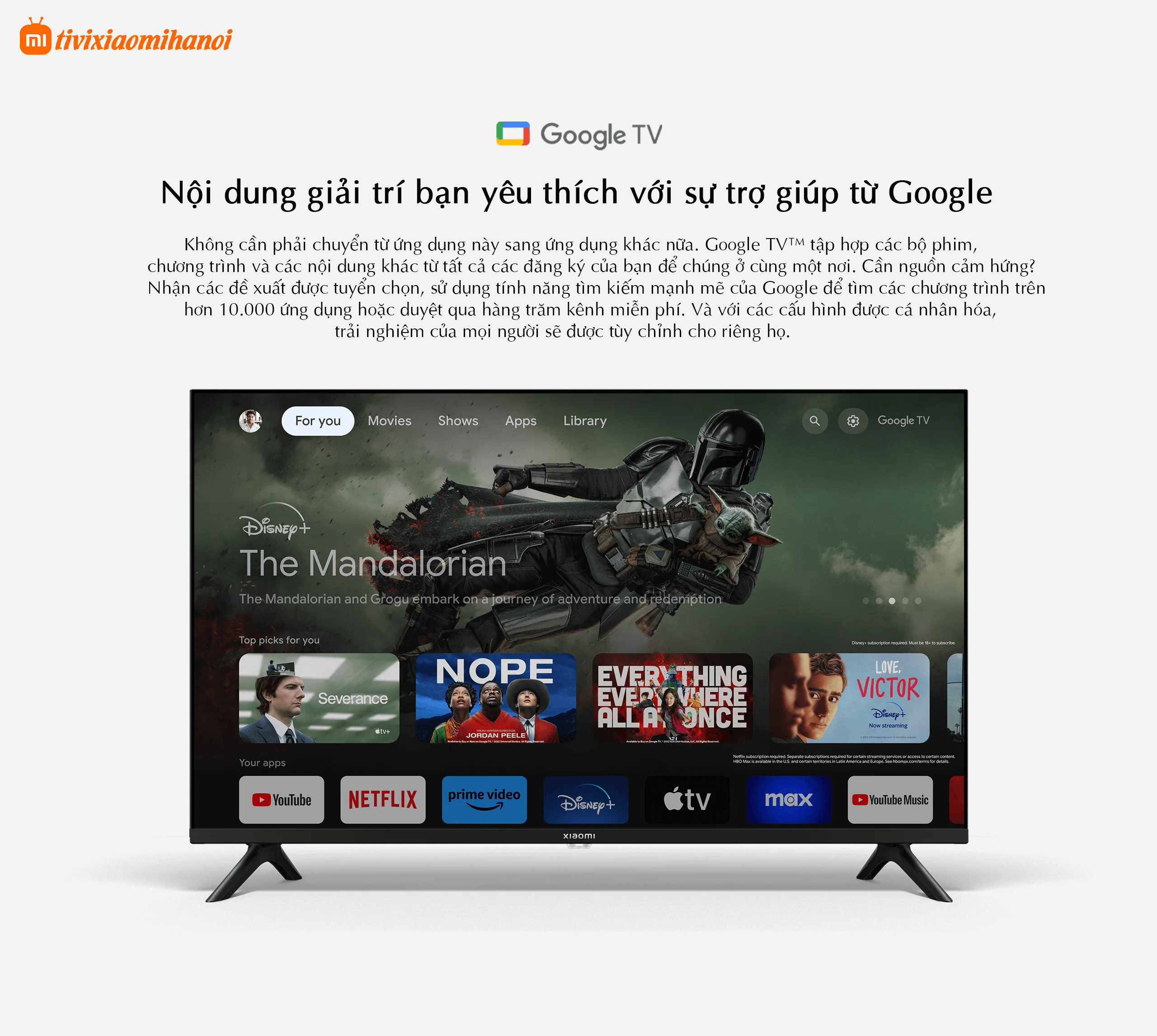 Nội dung giải trí bạn yêu thích với sự trợ giúp từ Google. Không cần phải chuyển từ ứng dụng này sang ứng dụng khác nữa. Google TV™ tập hợp các bộ phim, chương trình và các nội dung khác từ tất cả các đăng ký của bạn để chúng ở cùng một nơi. Nhận các đề xuất được tuyển chọn, sử dụng tính năng tìm kiếm mạnh mẽ của Google để tìm các chương trình trên hơn 10.000 ứng dụng hoặc duyệt qua hàng trăm kênh miễn phí. Và với các cấu hình được cá nhân hóa, trải nghiệm của mọi người sẽ được tùy chỉnh cho riêng họ.