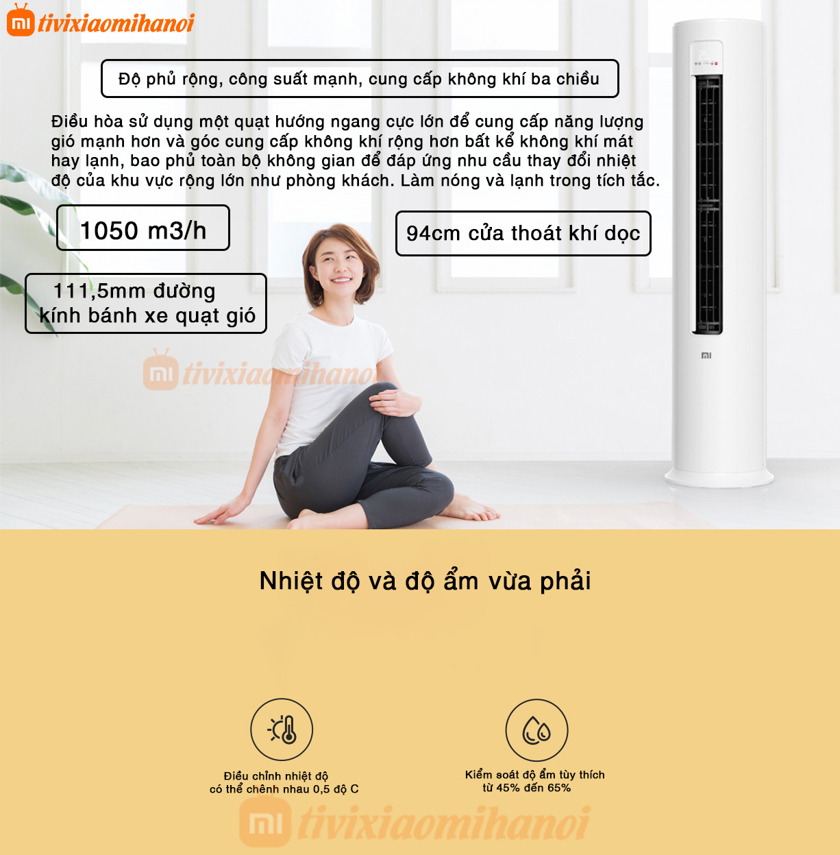 Điều hòa cây Xiaomi 18000 BTU Cấp 1 (N1A1) có thể nói là một sản phẩm rất hấp dẫn, tính linh hoạt là một trong những tính năng đặc biệt của nó. Nó có chức năng kiểm soát nhiệt độ và độ ẩm kép, có thể tự động điều chỉnh nhiệt độ và độ ẩm theo môi trường, tạo ra môi trường gia đình thoải mái cho người dùng. Đồng thời, chế độ cấp khí ba chiều cho phép mọi ngóc ngách trong phòng đều có thể tận hưởng khí nóng và lạnh đều.