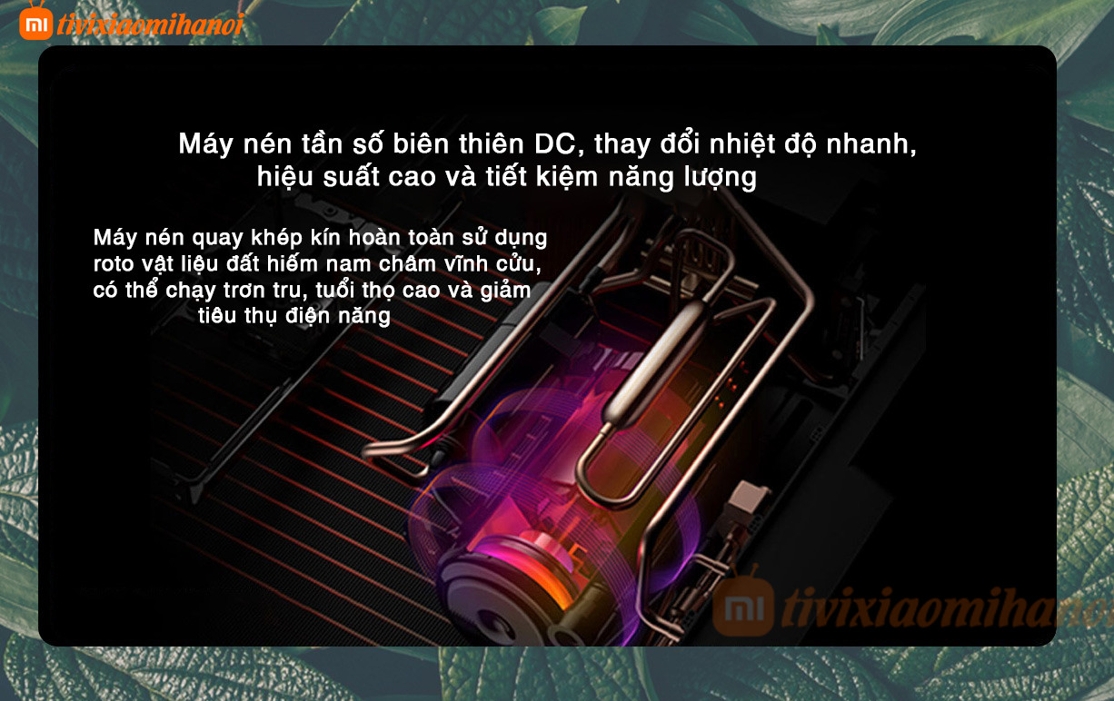 Điều hòa Điều hòa cây Xiaomi 18000 BTU Cấp 1 (N1A1) sử dụng máy nén tần số biến thiên DC, hoạt động trơn tru, tiết kiệm năng lượng và hiệu quả. Rôto vật liệu đất hiếm nam châm vĩnh cửu của máy nén quay được bao kín hoàn toàn đảm bảo tuổi thọ lâu dài. Chức năng làm sạch tự động loại bỏ bụi và vi khuẩn bên trong một cách hiệu quả và đảm bảo chất lượng không khí. Nó cũng có chức năng hút ẩm được cá nhân hóa để kiểm soát với môi trường ẩm ướt trong các mùa khác nhau và duy trì độ ẩm trong nhà phù hợp.