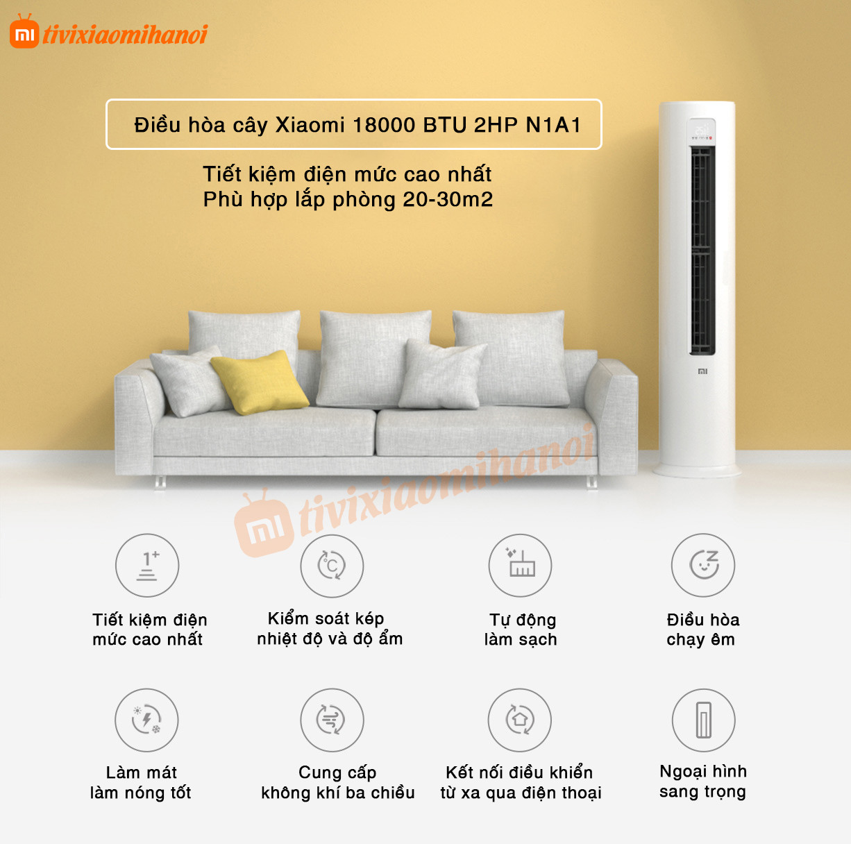 Điều hòa cây Xiaomi 18000 BTU Cấp 1 (N1A1) có nhiều chức năng, kiểm soát nhiệt độ và độ ẩm kép, điều khiển thông minh, tiết kiệm năng lượng và hiệu quả cao. Giá cả phải chăng, hiệu suất vượt trội, làm lạnh và sưởi ấm nhanh, độ ồn thấp.