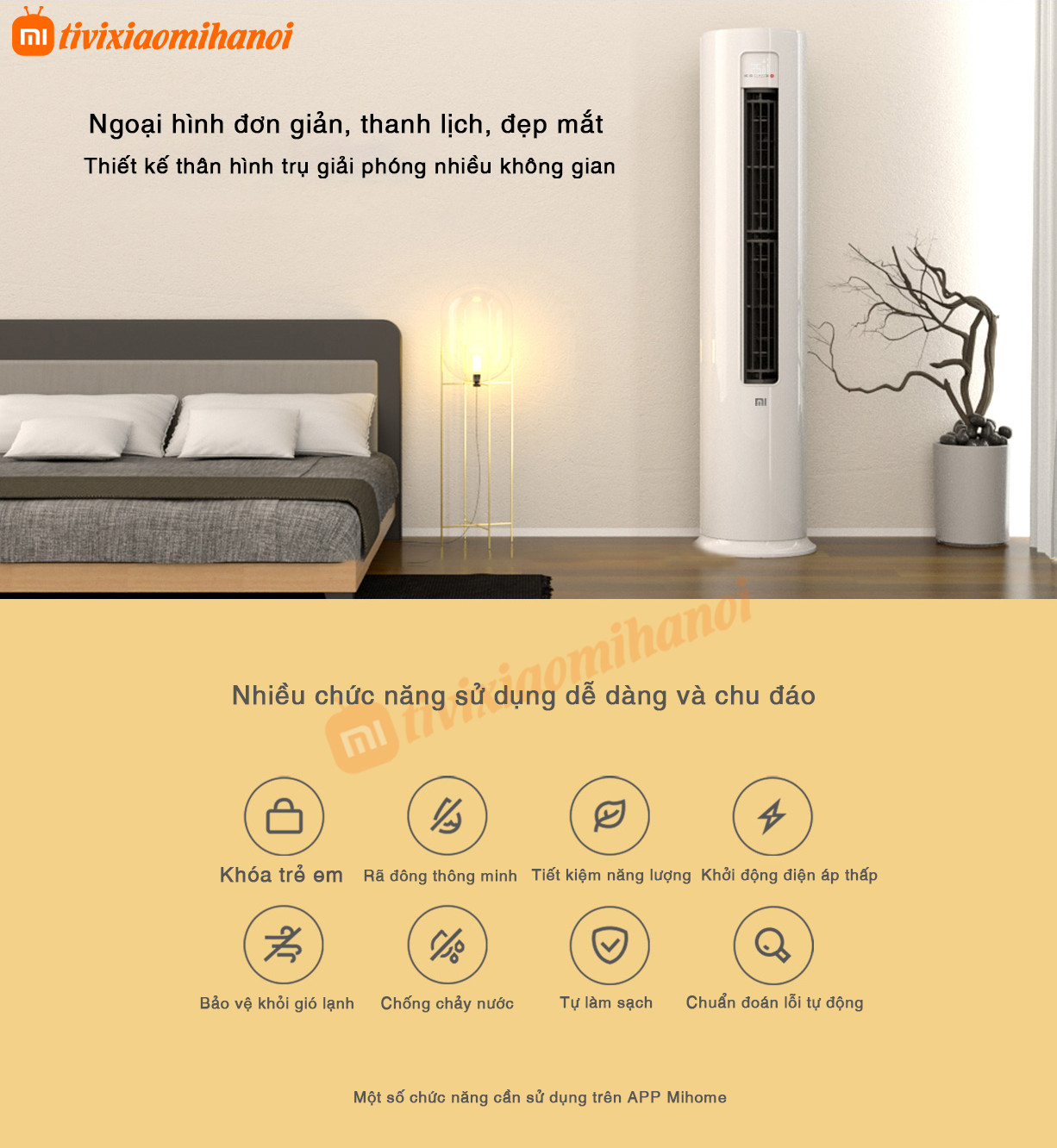 Điều khiển thông minh hoạt động tốt. Người dùng có thể điều khiển từ xa thông qua APP Mihome trên điện thoại di động và điều chỉnh nhiệt độ mọi lúc mọi nơi, thuận tiện và nhanh chóng. Nó có thể cảm nhận nhiệt độ và độ ẩm trong nhà một cách thông minh và tự động điều chỉnh chế độ vận hành, giúp tiết kiệm nỗi lo và năng lượng.