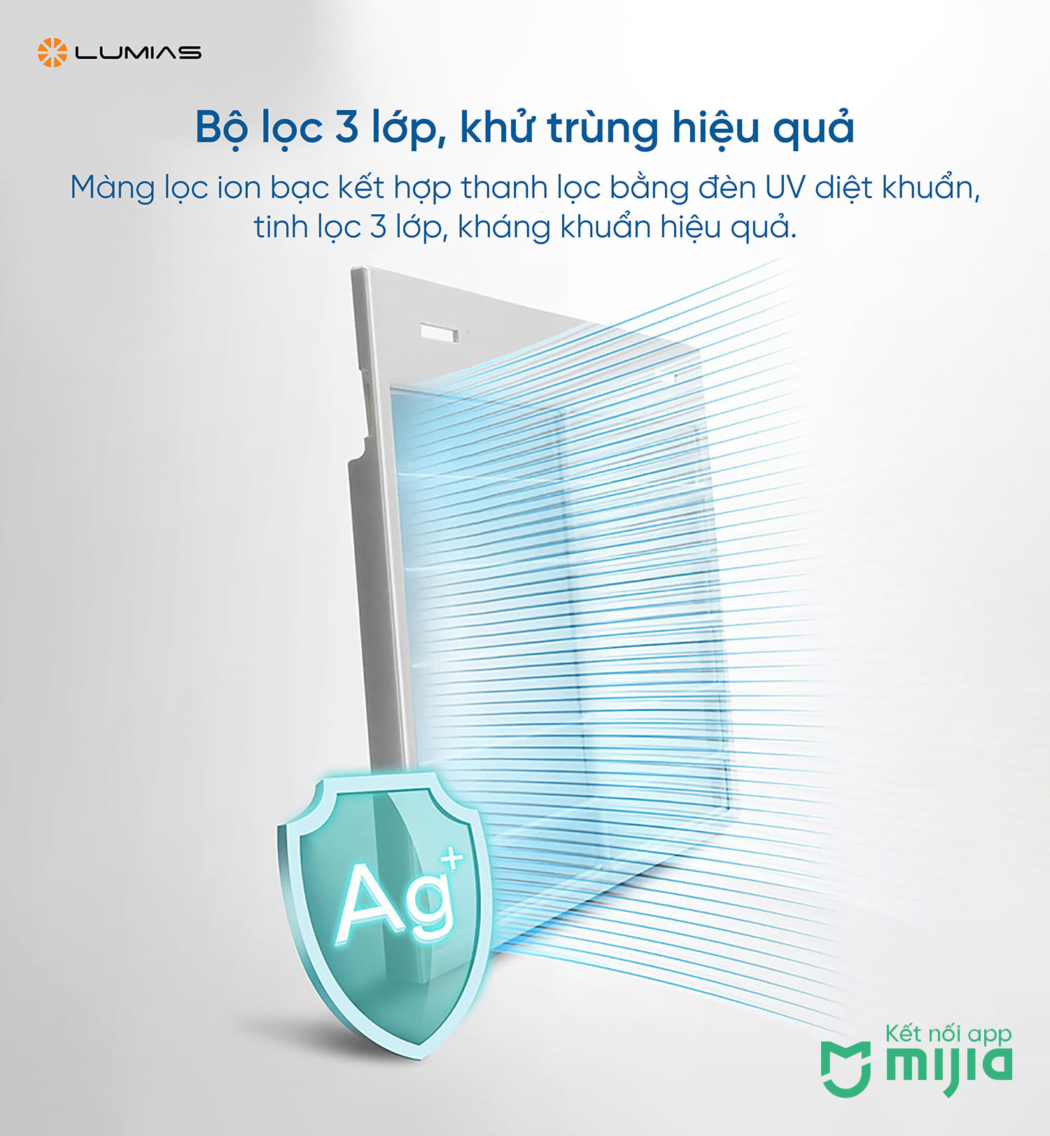 Được trang bị bộ lọc 3 lớp kết hợp với màng lọc ion bạc và đèn UV, máy giúp loại bỏ vi khuẩn, virus và bụi mịn, mang lại không khí trong lành cho gia đình bạn.