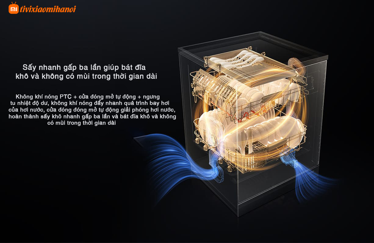 Công nghệ sấy nhanh gấp ba lần của Máy rửa bát Xiaomi Mijia P1 16 bộ