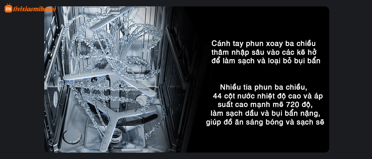 Máy rửa bát Xiaomi Mijia 16 bộ N1 được trang bị hệ thống phun ba chiều đa dạng. Khi chúng ta bắt đầu rửa bát bằng nó, nó sẽ tạo ra 44 tia phun ba chiều mạnh mẽ gồm các cột nước nhiệt độ cao và áp suất cao, có thể xuyên sâu vào các khe hở. xả mạnh mẽ và loại bỏ hoàn toàn vết dầu. Giữ cho bát đĩa của bạn sáng bóng và sạch sẽ.