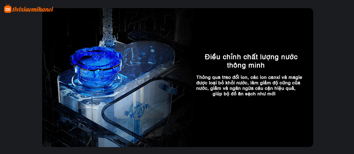 Máy rửa bát này còn có nhiều thiết kế thông minh được chăm chút rất kỹ lưỡng như khả năng điều chỉnh chất lượng nước thông minh, thông gió tự động. Máy rửa bát Xiaomi Mijia N1 loại bỏ các ion canxi và magie khỏi nước thông qua trao đổi ion, giảm độ cứng của nước, giảm và ngăn ngừa cặn hiệu quả, giúp bộ đồ ăn sạch như mới.