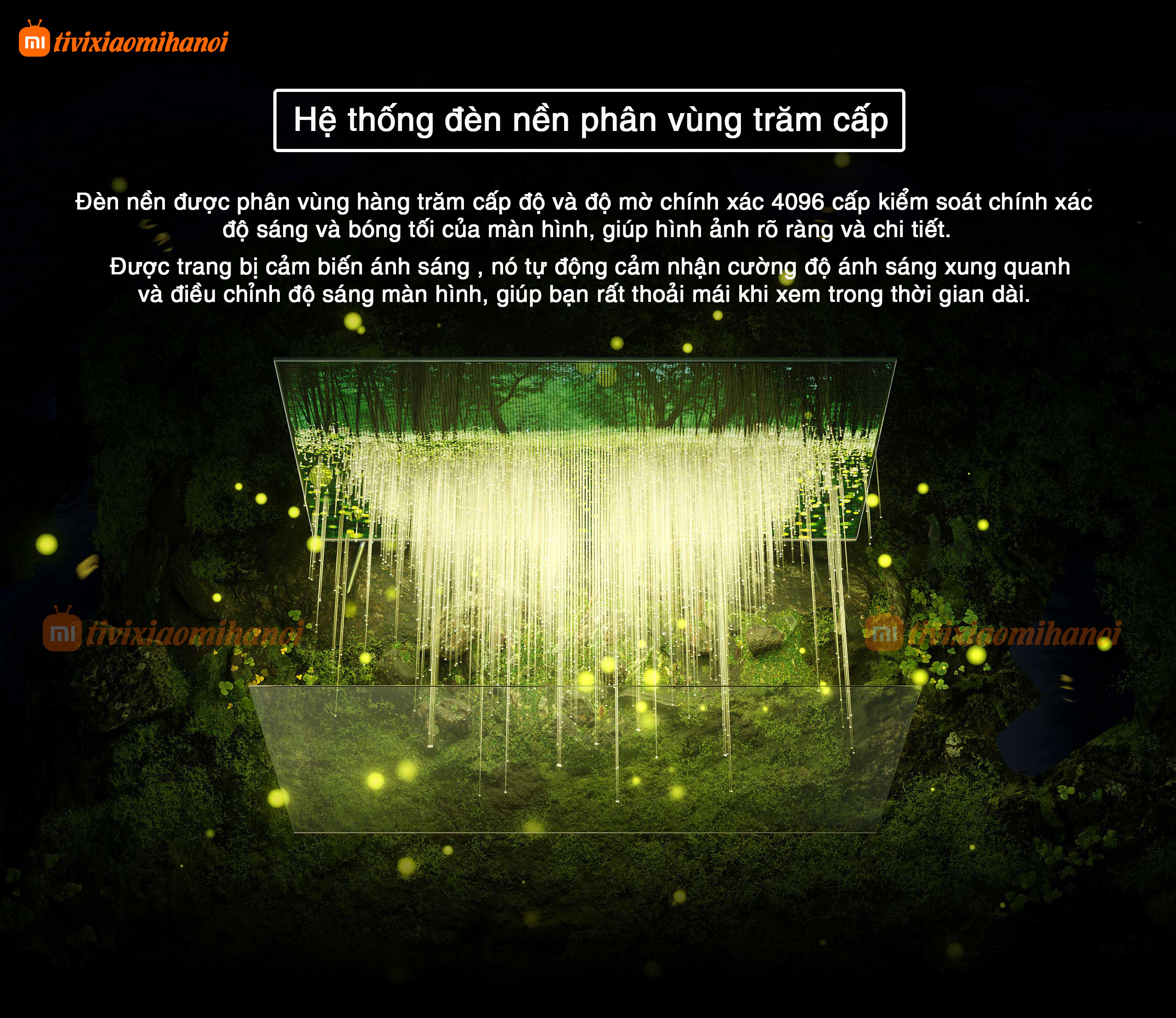 Tivi Xiaomi TV ES Pro 86 inch là chiếc TV có áp dụng công nghệ phân vùng đa cấp 100 , có 4096 cấp độ, điều chỉnh độ sáng chính xác và độ tối của màn hình, hình ảnh hiện thị chính xác . Được trang bị cảm biến ánh sáng Light sensor có thể tự động cảm nhận cường độ ánh sáng xung quanh, từ đó điều chỉnh độ sáng của màn hình, giúp bạn xem thoải mái hơn. Nhờ công nghệ đèn nền đa vùng nên độ sáng tối đa của màn hình có thể lên tới 1000 nits, ngay cả dưới ánh mặt trời vào buổi trưa, bạn vẫn có thể xem màn hình rõ nét, kể cả bạn hay mở rèm vào ban ngày.