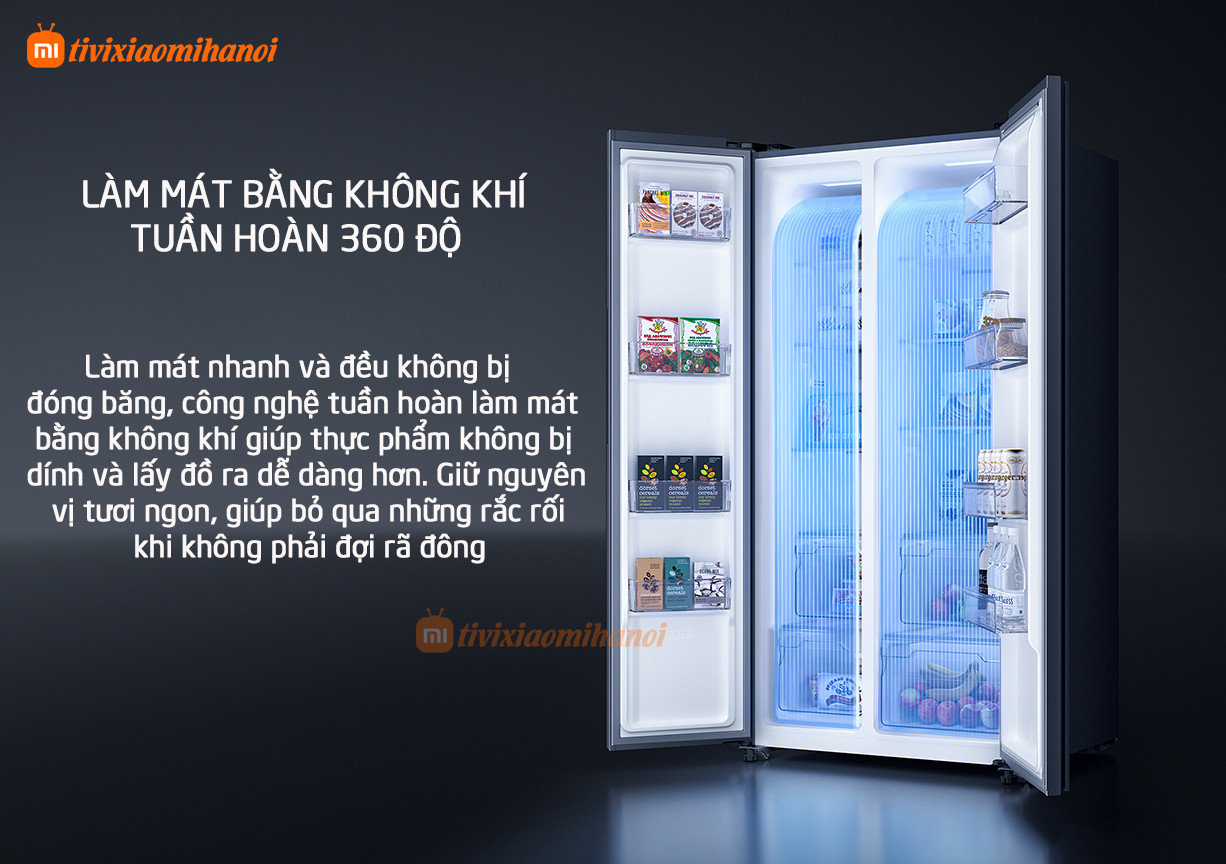 Công nghệ làm mát không khí 360 độ, làm mát nhanh và đều mà không bị đóng băng, giữ nguyên vị tươi ngon của thực phẩm