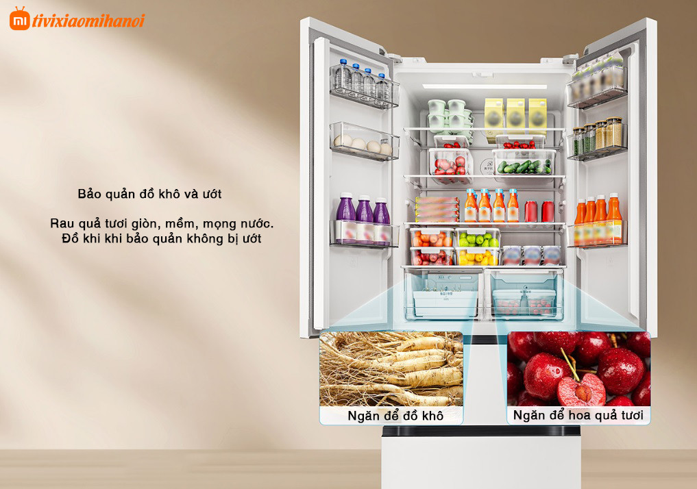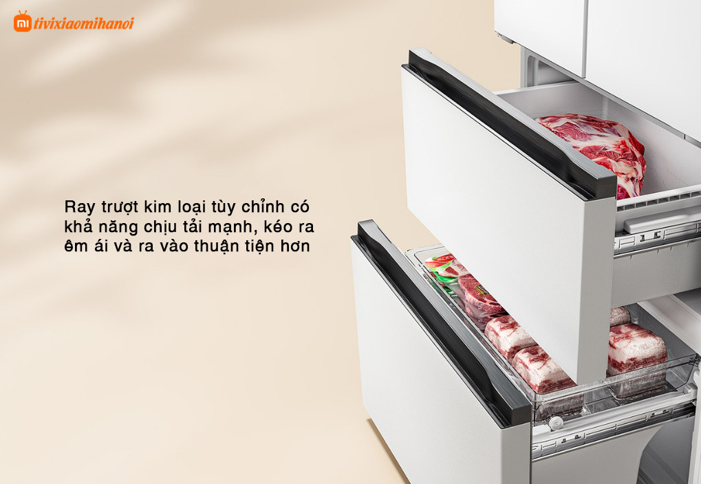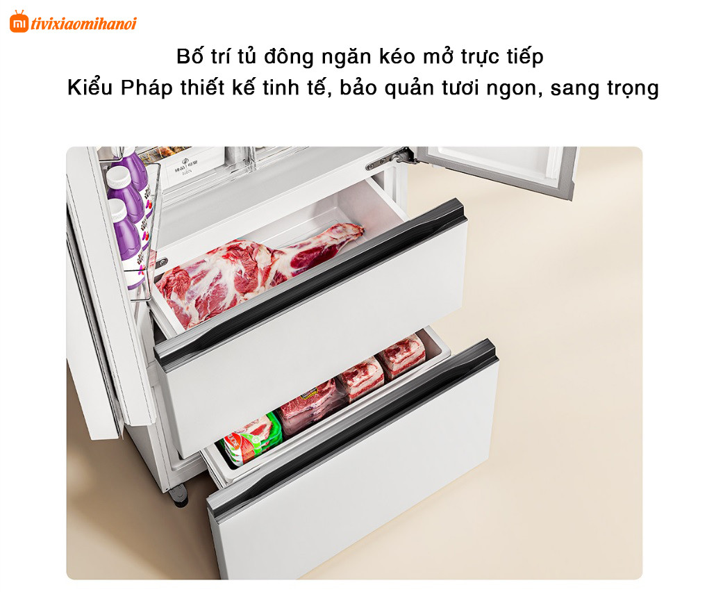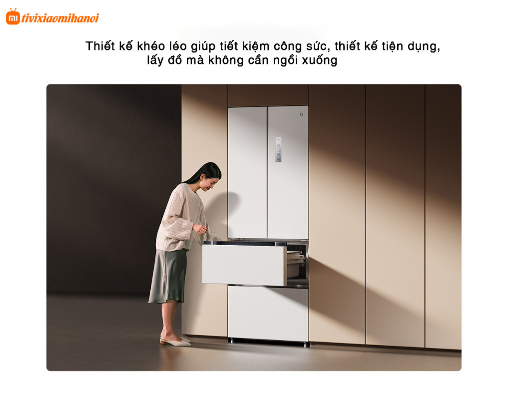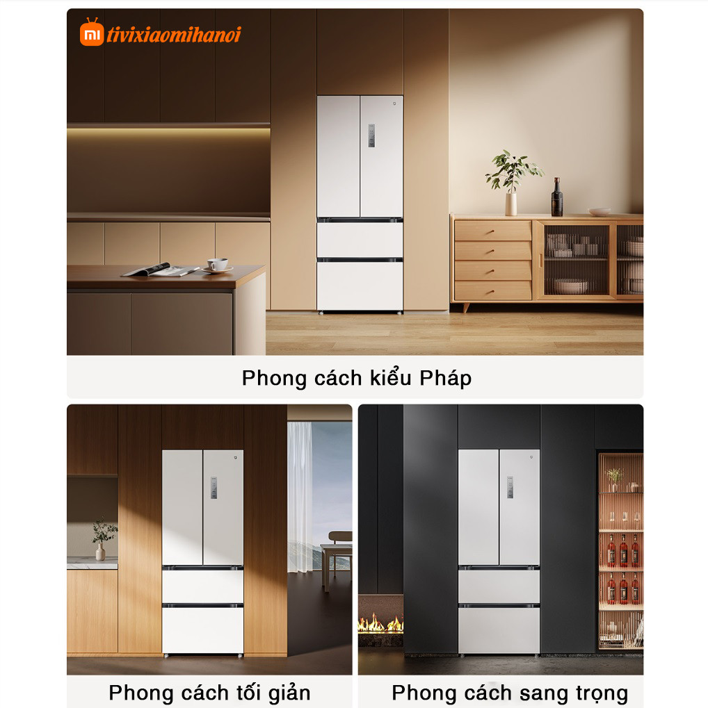 Tủ lạnh Xiaomi Mijia 439L kiểu Pháp có vẻ ngoài trang nhã, có không gian nội thất phong phú, có ngăn dành cho mẹ và bé. Tủ áp dụng công nghệ bảo quản đồ tươi ngon và vận hành thông minh, tiết kiệm năng lượng, ít tiếng ồn và mang lại sự thoải mái.