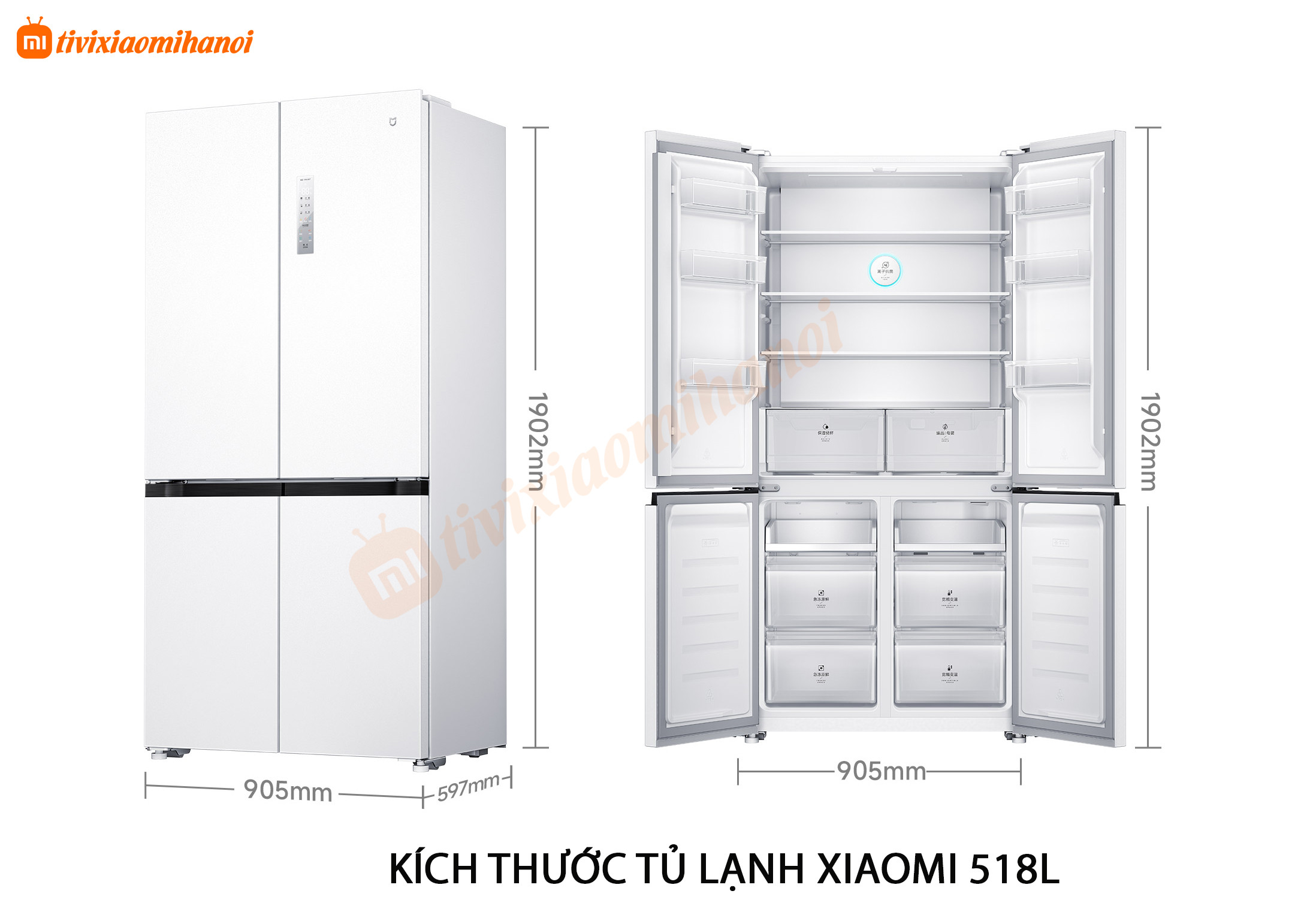 Tủ lạnh Xiaomi 518L màu trắng đẹp – siêu tiết kiệm điện – có ngăn đông mềm