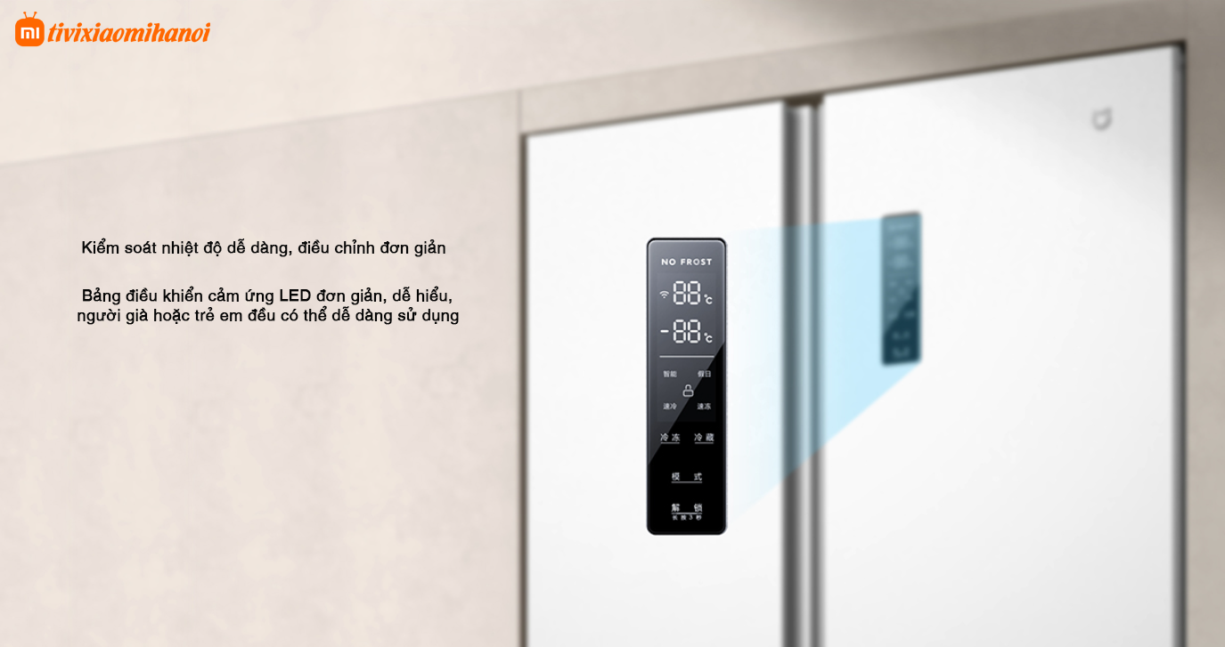 Ngoài những ưu điểm về phần cứng kể trên, Tủ lạnh Xiaomi Mijia 616L còn nổi bật về mặt thông minh. Tủ được trang bị bảng điều khiển cảm ứng LED và hỗ trợ 4 chế độ làm mát có thể điều chỉnh theo yêu cầu. Cho dù bạn cần cấp đông nhanh, bảo quản tiết kiệm năng lượng hay các chế độ khác, chỉ cần chạm vào bảng điều khiển để hoàn tất cài đặt. Ngoài ra, tủ lạnh còn hỗ trợ kết nối với App Mihome, cho phép bạn điều khiển tủ lạnh từ xa thông qua điện thoại di động mọi lúc mọi nơi. Cho dù đó là kiểm tra trạng thái tủ lạnh, điều chỉnh nhiệt độ hay chọn chế độ, tất cả đều dễ dàng thực hiện.
