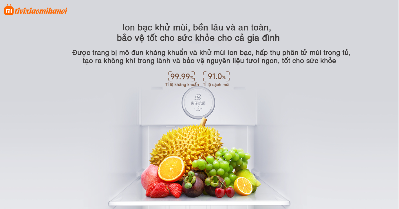 Về vấn đề sức khỏe, Tủ lạnh Xiaomi Mijia 616L cũng được chăm chút chu đáo. Nó được trang bị mô-đun kháng khuẩn và khử mùi ion bạc, có khả năng hấp thụ hiệu quả các phân tử mùi trong tủ lạnh đồng thời ức chế sự phát triển của vi khuẩn, mang lại môi trường bảo quản lành mạnh và tươi ngon hơn cho nguyên liệu của bạn. Đây chắc chắn là một tin vui dành cho những gia đình có trẻ em, người già hoặc những gia đình chú trọng đến chế độ ăn uống lành mạnh.